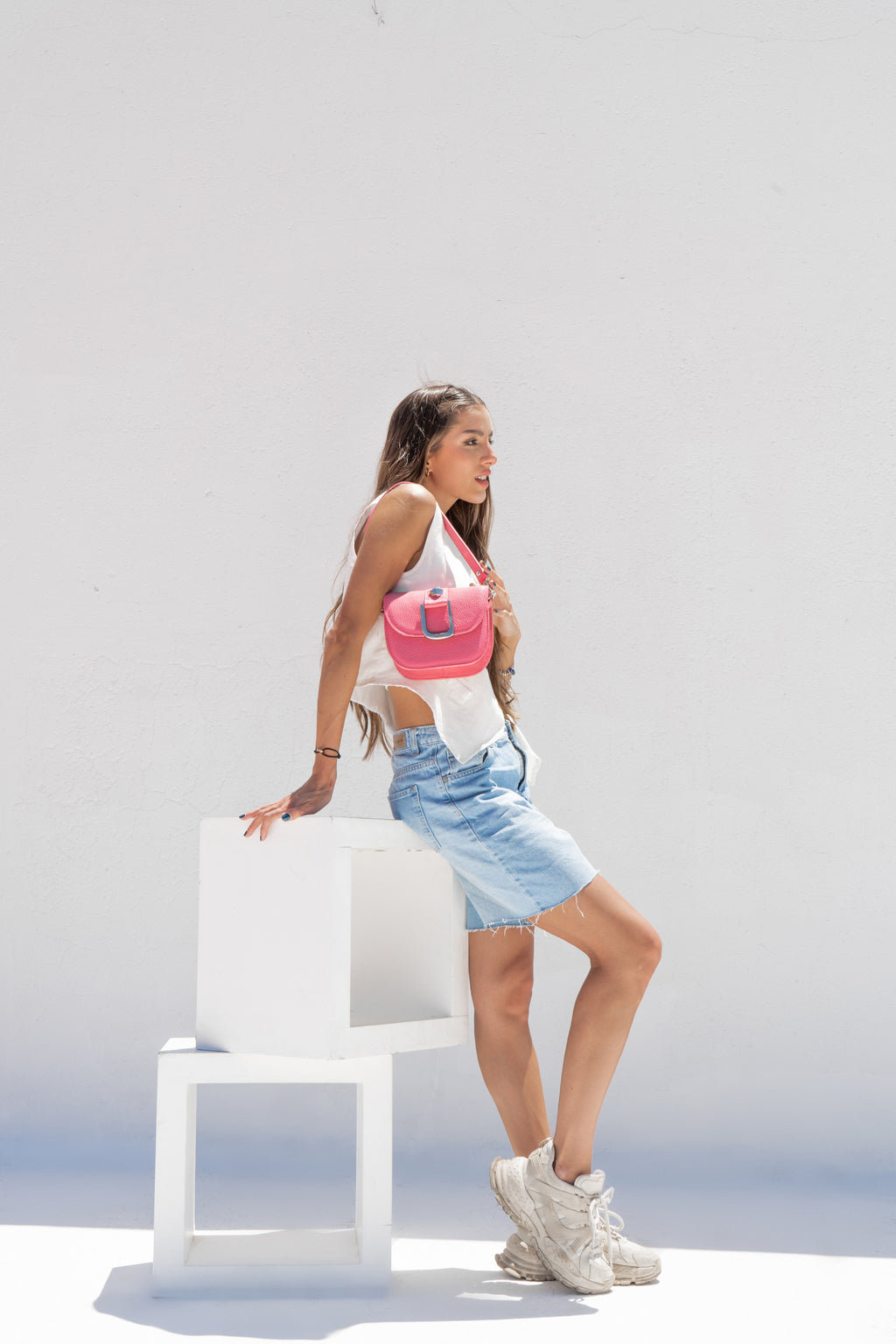 - It comes with two removable straps: one adjustable with a buckle, and the other shorter, perfect for wearing crossbody or as shoulder bag.
